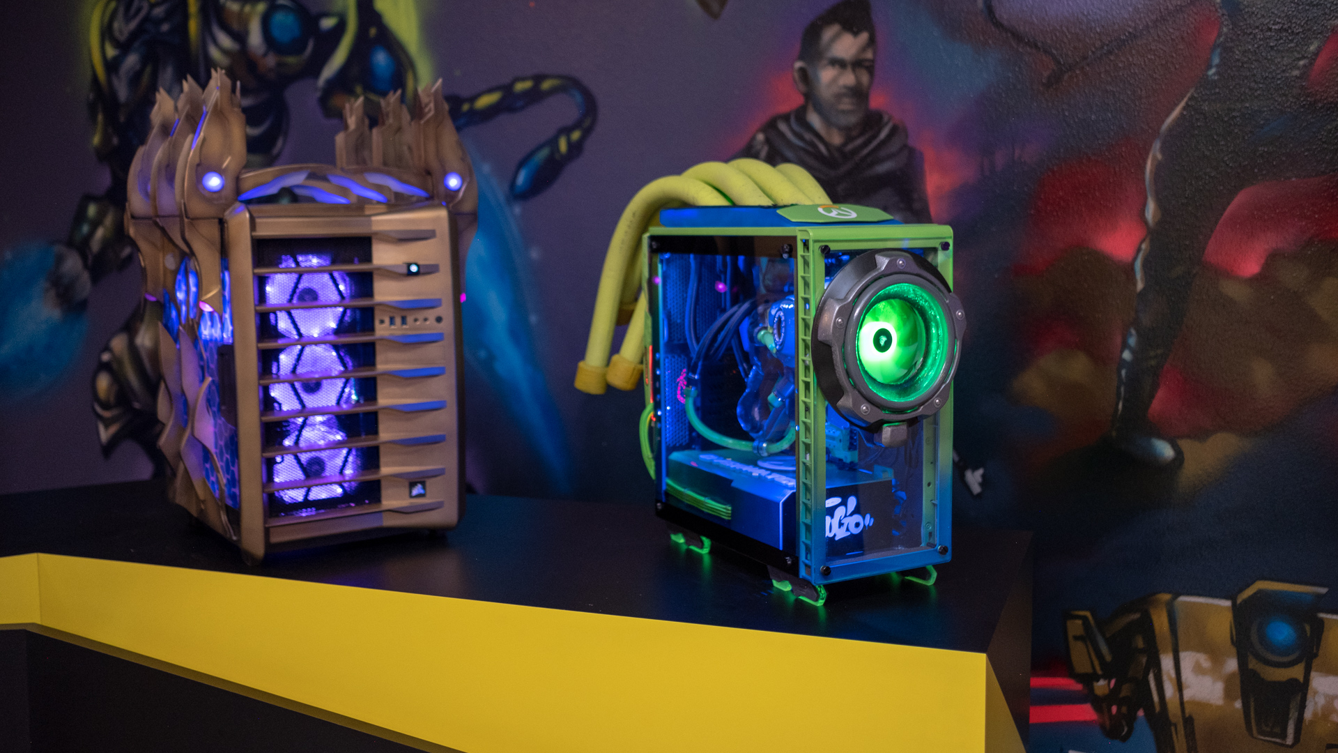 The most extreme PC rig award goes to Corsair's Obsidian 1000D build. Corsair managed to pack in 25 fans, four AIO liquid-coolers, two motherboards, two processors, three graphics cards, dual power supplies, six SSD drives and a whole lot of sleeved cables into this massive dual-system case.