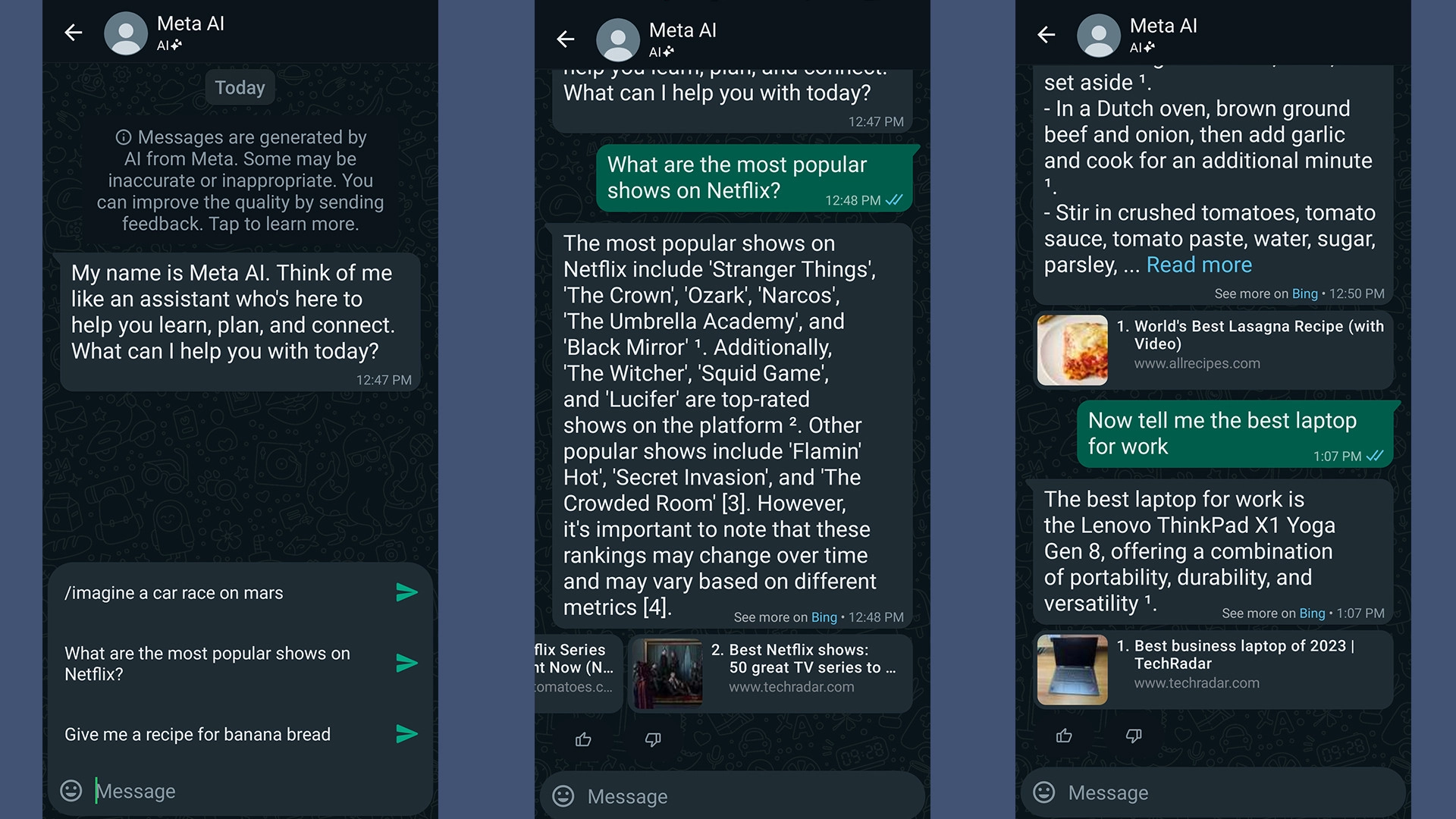 For a company that’s spent the past year weaving its Meta AI into every corner of its products, this isn't too surprising. WhatsApp is a huge platform for Meta to test AI ideas, and hosting an array of third-party chatbots means not everyone there is turning to Meta AI for help.