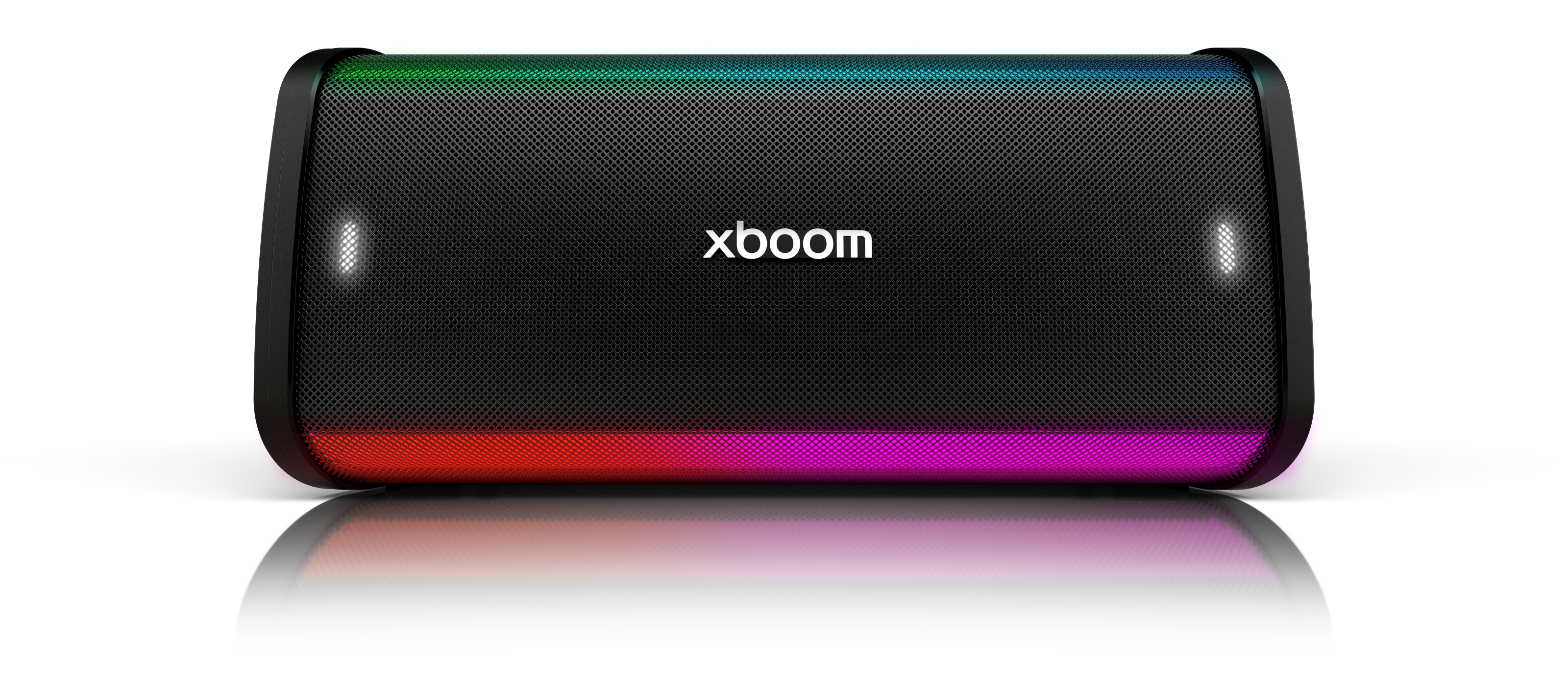 LG xboom Stage 501 shot from the front on a white background and surface
