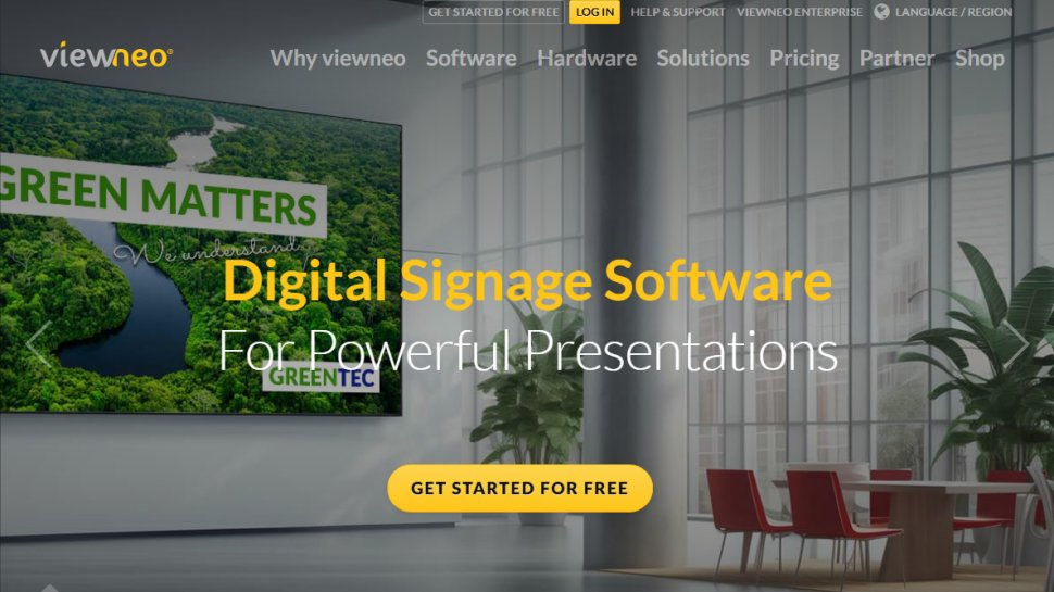 Viewneo combines its software with optimized hardware solutions, including AI-powered sensor technology to determine when your monitors display messages.