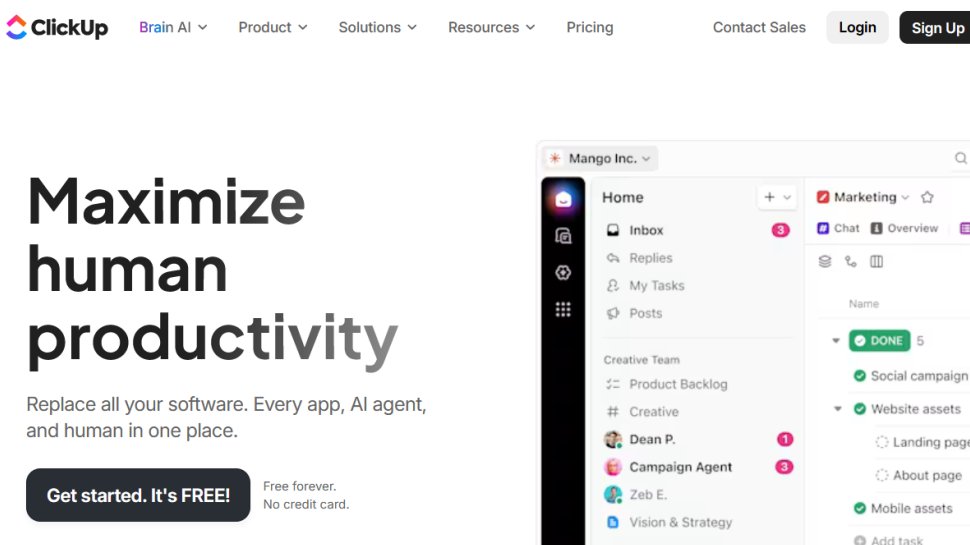 On the other end of the scale as businesses that need a really detailed solution, though they may not be able to justify big IT spends just yet. ClickUp promises to be the “one app to replace them all.”