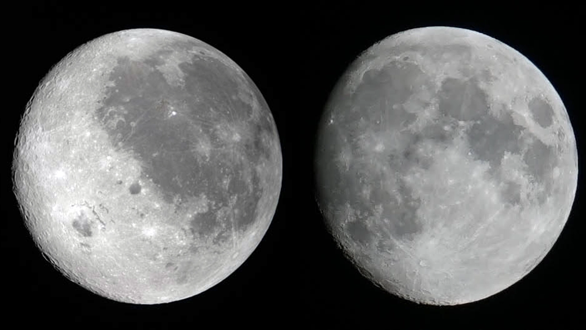 Toward the left side of my image is a bright spot, likely a meteor strike. If you use that as a point of reference and then look at the Artemis II mission image on the left, you can see that the bright spot is now in the upper right.
