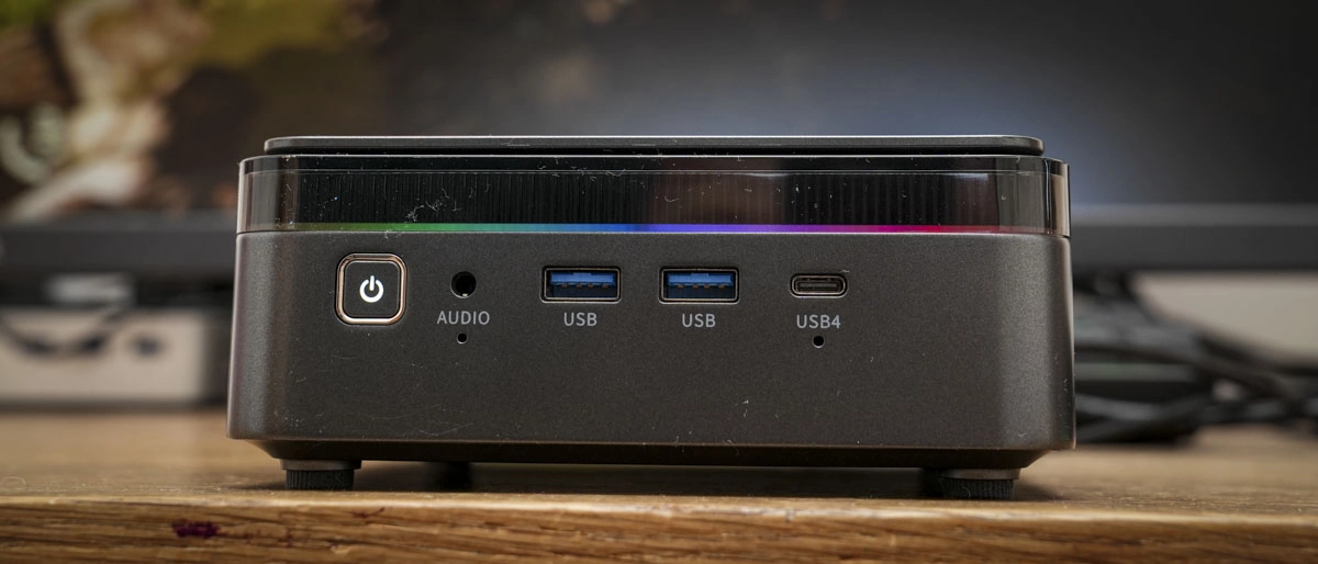 Another design feature the ACEMAGIC F3A has is the coloured LED array around the whole edge of the casing. Whilst this is aesthetically pleasing, it can get a little bit annoying, and you need to dip into the BIOS in order to switch it off—again reflecting its gaming pedigree over more standard use.