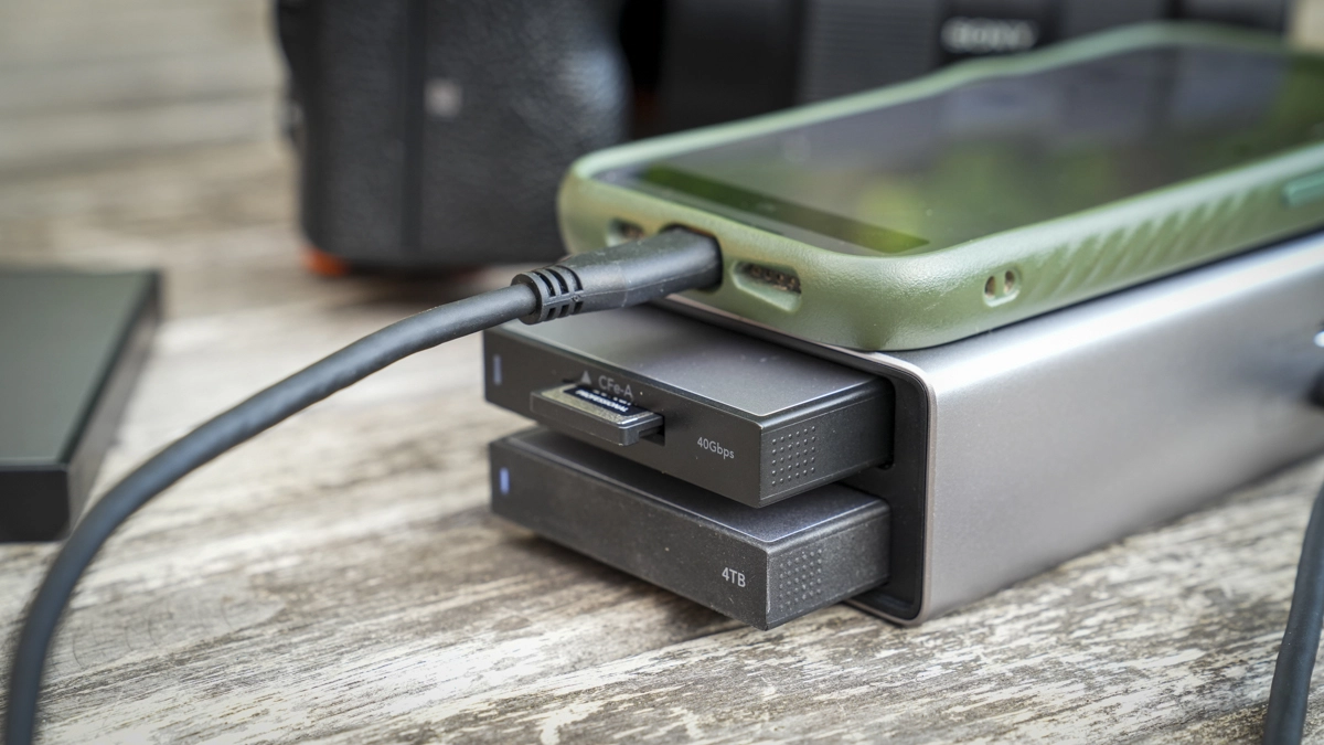 From the outset, I was impressed with the transfer speed of files from the memory cards or all types to the SSD module. Files from a CFexpress Type-B card used to record 4K video footage from the Canon EOS R5C were copied to the 4 TB SSD in just over a minute and a half. The fact that it's a direct hardware connection between the SSD and the card reader meant it was far faster than some other mobile storage options that I have used in the past. Thankfully, the battery also had plenty of capacity to last out the day, and I liked the fact that towards the end of the shoot, when the battery level was dipping, I could plug it into a portable power bank to give it a boost.