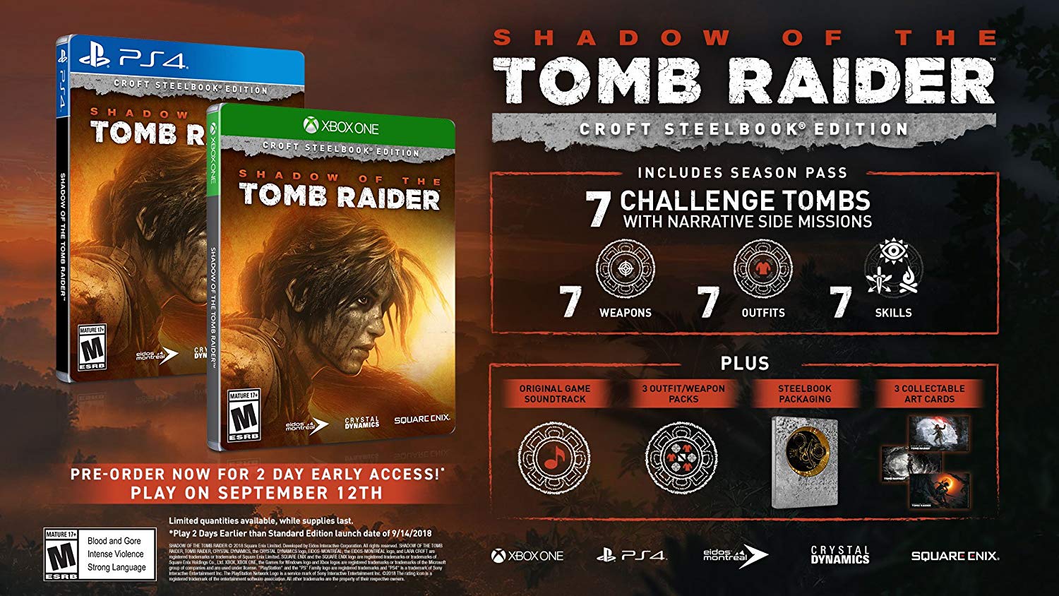 As with any big release video game nowadays, there's a special edition to consider. Shadow of the Tomb Raider: Croft Edition is the most common version - the fanciest version with a statue sold out on Square Enix's site ages ago.