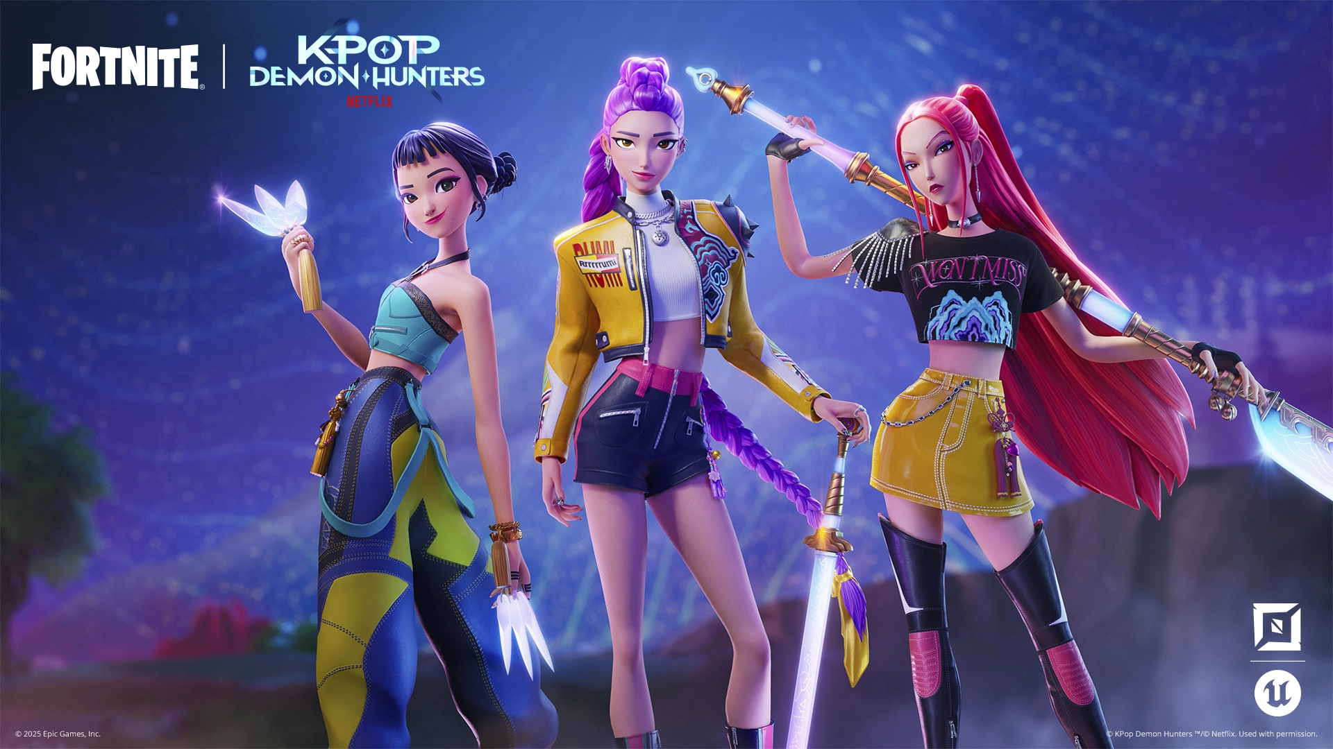 Starting today, players can get their hands on skins inspired by the HUNTR/X members, Rumi, Mira, and Zoey, in the Fortnite Item Shop, along with a selection of accessories and emotes from the Netflix hit that will also be available in the HUNTR/X Bundle.