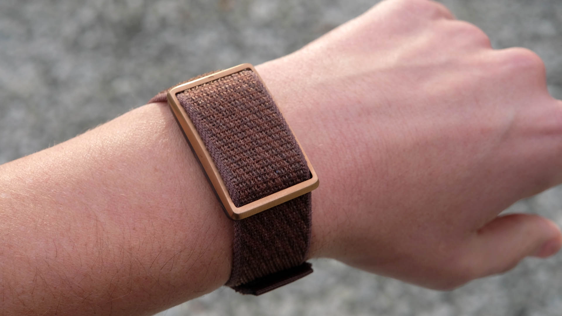Polar uses a fabric strap that weaves, buckle-like, over the wearable’s main unit. It covers where the screen would be in a normal watch. The Loop uses a velcro-style fastener and is clearly designed to look like a lifestyle wearable over a hardcore fitness gadget. While much of the core brick is plastic, the top and outer parts are brushed bronze-shade steel. It’s there to provide a touch of class.