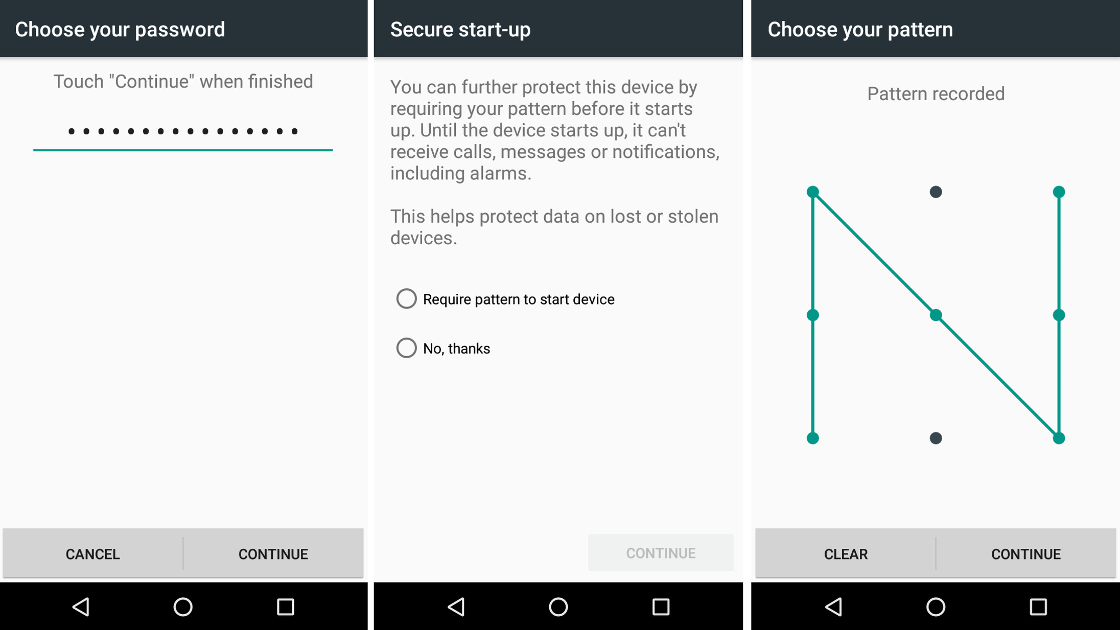 With your phone still plugged in, tap Security > Settings and scroll down to the 'Encryption' section. Tap on 'Encrypt' phone. Take some time to read through the security warning. From now on the screen must be unlocked using the method you chose during the last step to display data. If you lose your pass code, you'll have to reset the phone.