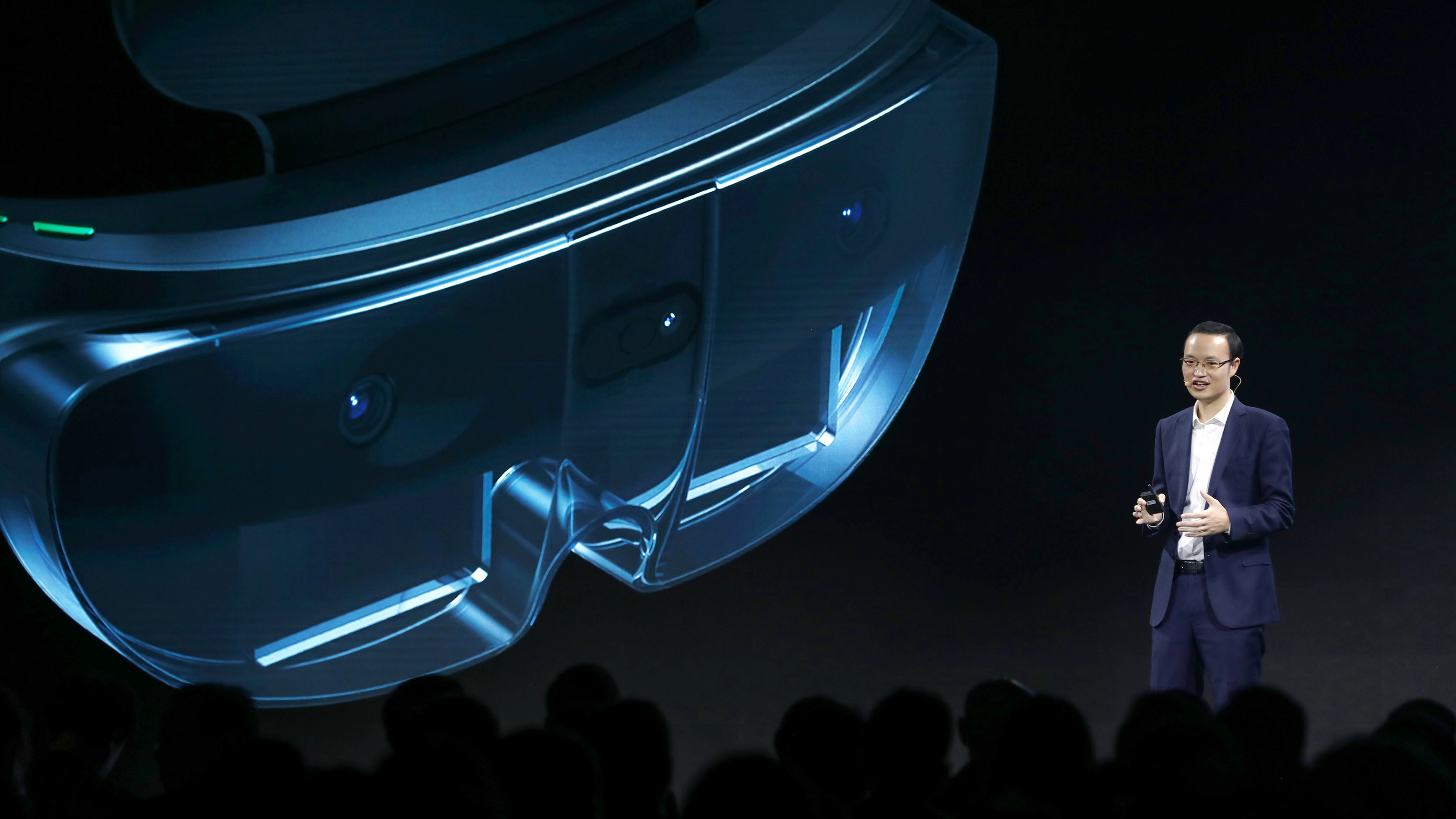 The AR goggles are packed with high-tech optics and sensors. There are two fisheye lenses, as well as a time-of-flight (ToF) lens that's used for depth sensing, and a standard HD camera, and this quartet of cameras should be capable of delivering a range of AR experiences.