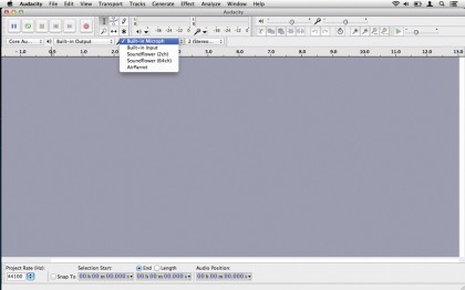 Head over to audacity.sourceforge.net and download the latest version of Audacity for OS X. It's a free audio recorder and editor that lets you capture the signal from your records in high quality as well as clean it up. On first load it scans any plug-ins that you may have installed.