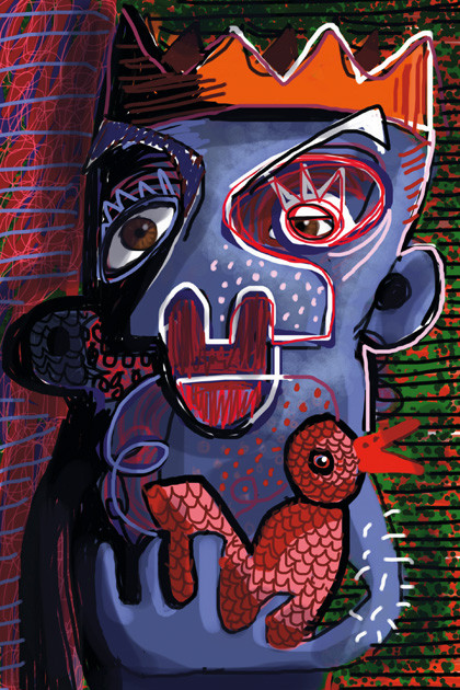 "For the most part I 'paint' the same on the iPad/iPhone as I do on canvas, but with a lot less clean-up. I begin with an initial sketch to work out the composition, then add in larger shapes for colours or tones. Next, I build on it layer after layer, adding line, colour and shape. I just use my finger – I like the direct interaction with the art and it feels more natural than a stylus. My damaged middle finger doesn't bend, and so it became a great new drawing instrument."