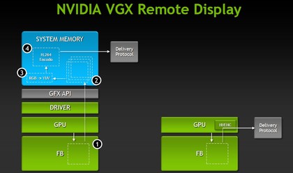 The Kepler-powered VGX cards are faster at getting information from the frame buffer ready to send to a remote system than the graphics cards in a server today; add the time it takes to get across the network and Nvidia says it's about the same time as the graphics processor in a console putting images up on screen).