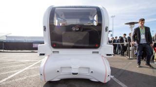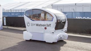 The demo took place in a parking lot and involved a company called Via, together with Comet and Aurrigo – showing not just how a shuttle might work but how you could request one as well. (Aurrigo operates autonomous shuttles in highly controlled settings like a college campus, but IBM Watson is not currently available in the shuttles.)