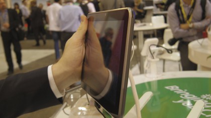 Another baffling addition is that the V96 on the show floor uses a 30-pin dock connector to charge. It's possible it was slightly tweaked, but it looks identical to any 30-pin we've ever seen connected to an iPod or iPad.