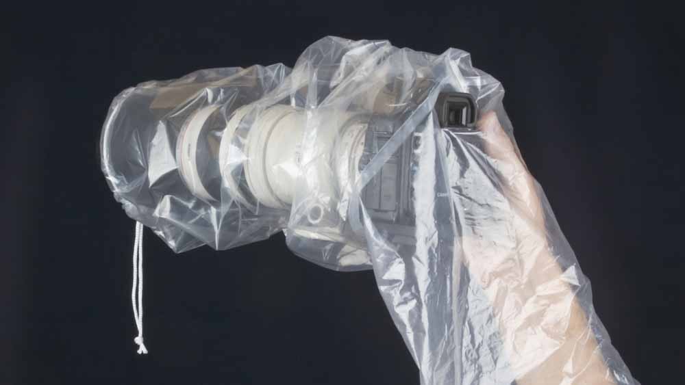 Optech Rainsleeves are a good option for those on a budget. They are basically a plastic bag shaped specially for a camera with a drawstring that fastens around the end of the lens. A hole is also cut out in the rear which can be fixed around the viewfinder eyepiece, to enable a clear view.