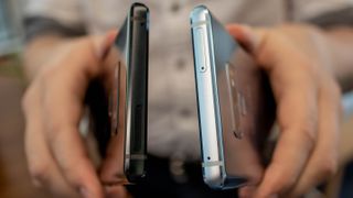 As you can see from our photo gallery (below) the front of the Note 9 remains black, with thin bezel at the top and bottom. You can still see the silver peeking around the sides, hinting at the shiny frame.