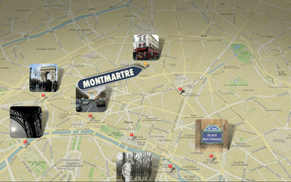 iPhoto '11 has new animated slideshows, including a Places theme that uses the Places information you add to your photos to present an animated map, with push-pins identifying the places you've visited. It comes with its own soundtrack, but you can add one of your own from your iTunes library.