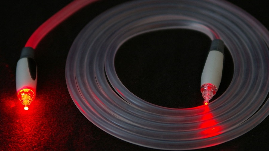 Optical fiber transmits light, not electricity, and as a result it can transmit at much higher speeds and over much longer distance than traditional wired cabling – and it doesn’t suffer from the electromagnetic interference that plagues metal cables.