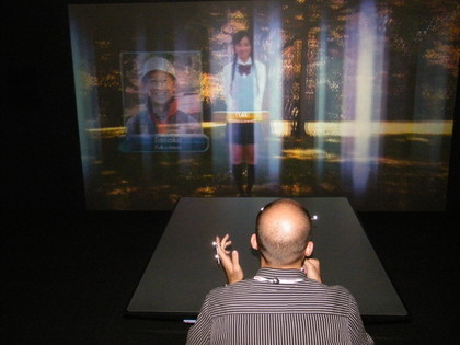 To receive this information, we were shown a simulated real-time call to someone in a butterfly field and a graphic of the migration of the butterfly. To make things interesting, the sensors on the glasses mean that the graphic can be tracked from what is projected on the table to the television screen.