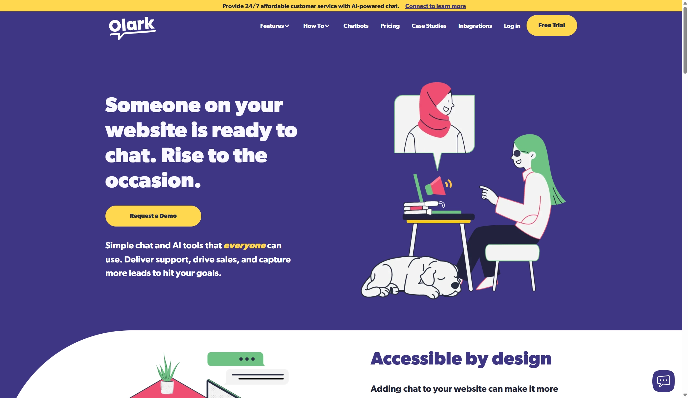 Olark provides a full set of live chat features that boost sales, marketing, and customer support for any business. It combines strong communication tools with solid analytics, automation, and team management. This makes it a complete solution for customer engagement. Its easy-to-use interface and customizable options help businesses connect with website visitors in real-time. They can also gather insights that promote growth.