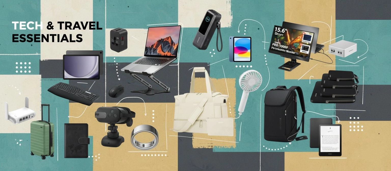Office gear includes lightweight laptops and tablets that won’t slow you down, portable monitors that recreate a true desk setup on the go, and wireless keyboards that make typing from anywhere feel comfortable and natural.