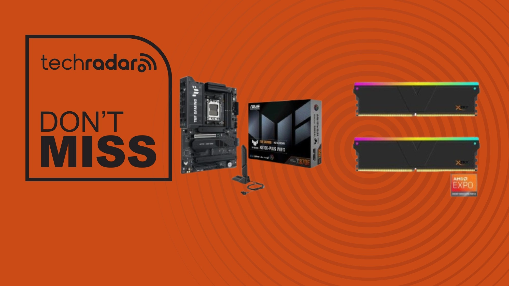 Unmissable combo deal here, bundling together the Asus TUF GAMING X870E-Plus motherboard with two 16GB DDR5 V-color TMXSAL1664832KWK modules.