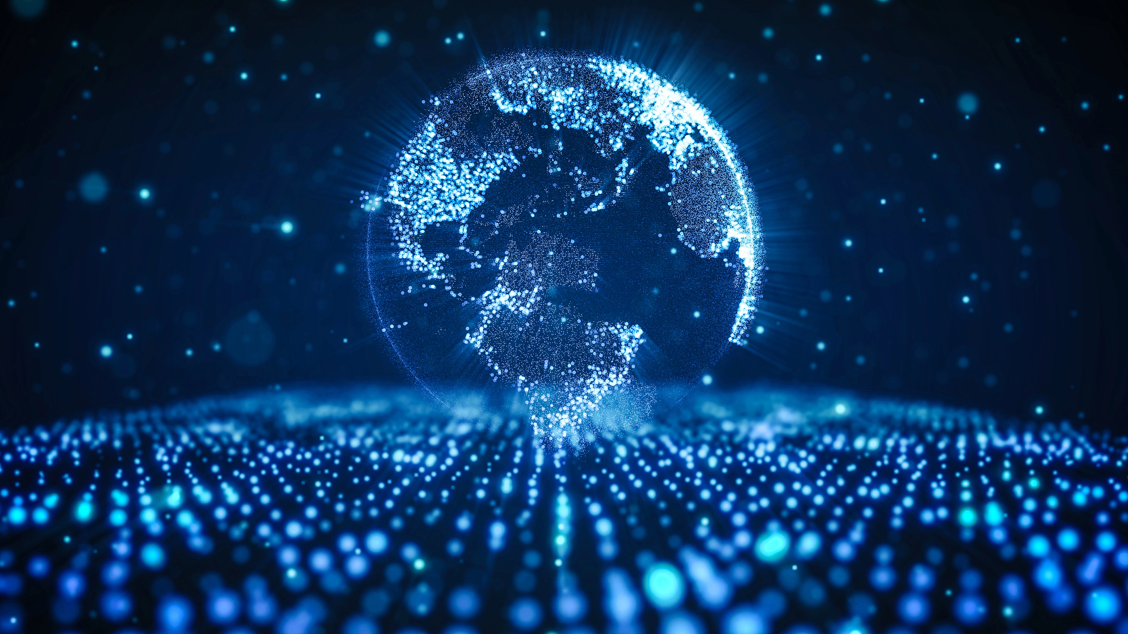 A digital representation of the globe in blue