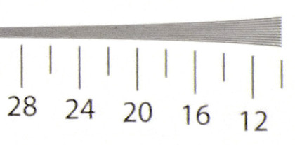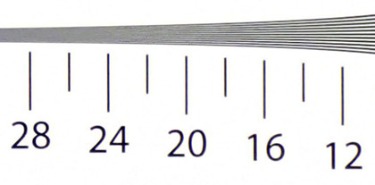 Examining images of the chart taken at each sensitivity setting reveals the following resolution scores in line widths per picture height x100: