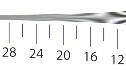 Examining images of the chart taken at each sensitivity setting reveals the following resolution scores in line widths per picture height x100: