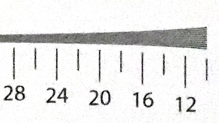 Examining images of the chart taken at each sensitivity setting reveals the following resolution scores in line widths per picture height x100: