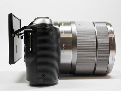 There is no viewfinder to speak of on the Sony NEX-C3. Composing images is done via the camera's 3-inch LCD screen, which can be tilted for use as a waist finder, or at around 45 degrees downwards for shots above head height.