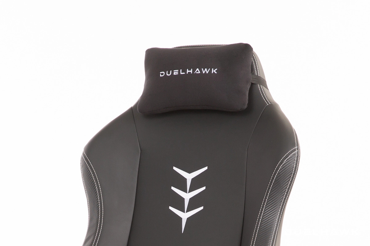 This is perhaps where the Duelhawk Ultra really steps up. In the unit provided, Moonrock Fabric, it offers a shape that is undeniably a gaming chair but it's much softer on the eyes. It has a logo on the front of the backrest, with the Duelhawk signage at the top of the headrest, but otherwise, it’s fairly unintrusive. If you like, it comes with a headrest pillow to cover up that signage too. The pillow comes with the same typography, but since it’s black embroidery on a black pillow, it’s impossible to tell at a distance.