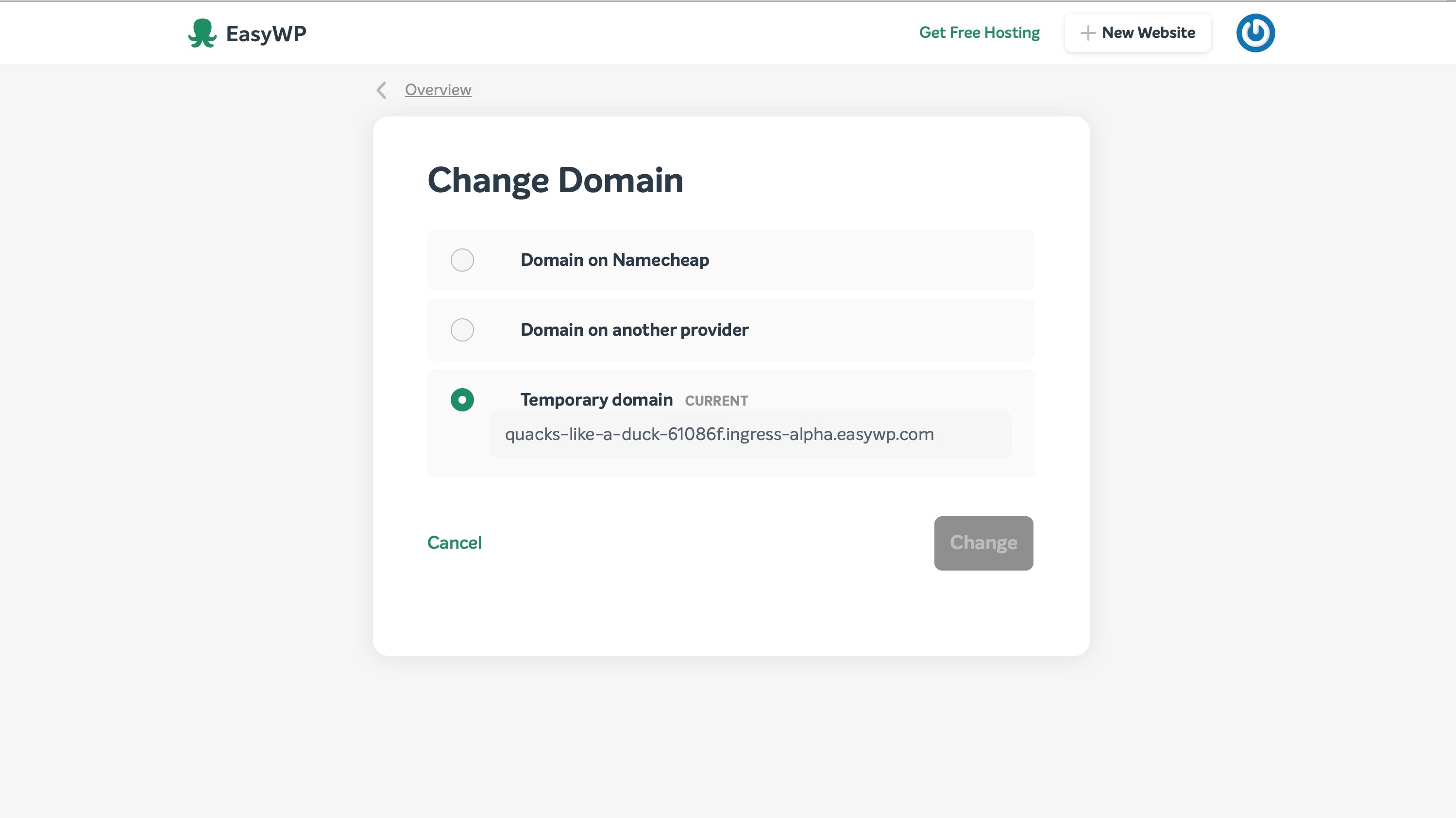 The former is what you should choose if you're starting from scratch or if you intend to perform a manual site migration. If you choose this option, EasyWP immediately creates a clean WordPress installation for you.