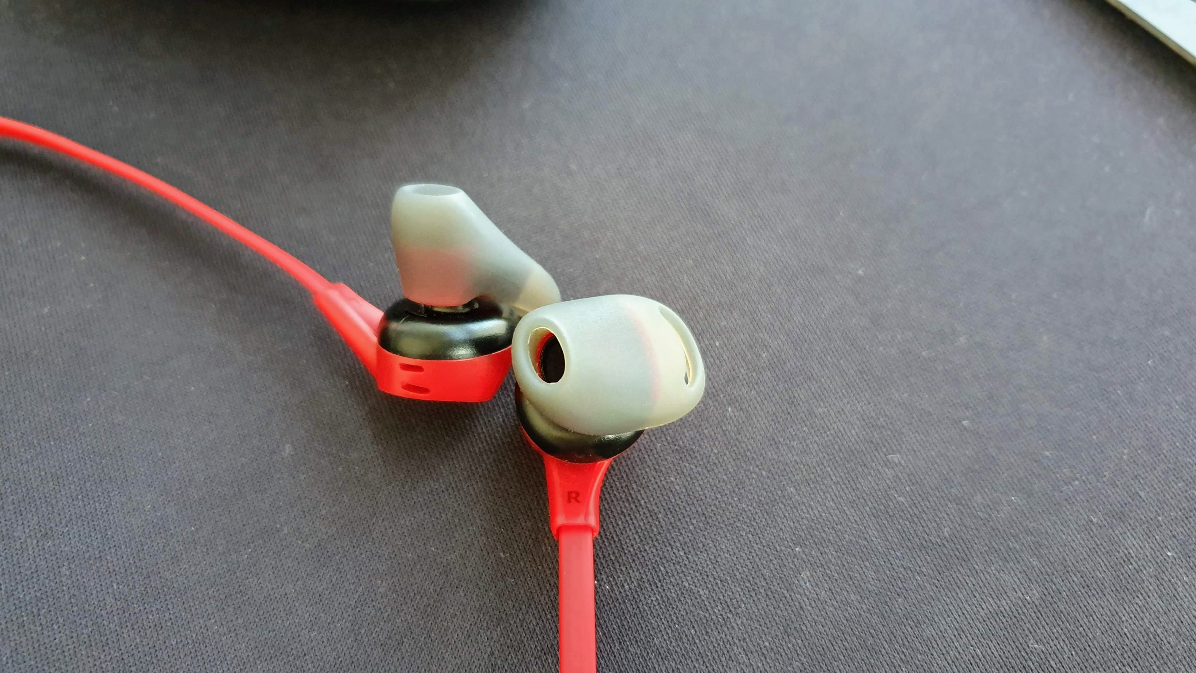 While it's a better earbud design for some, many like me prefer the rounded tips. These fit well in the ear and stay put, but I didn't get comfortable wearing these I constantly had a feeling that they're fitting properly and may fall off. Thankfully, they didn't fall, but I had to adjust them repeatedly while playing games.