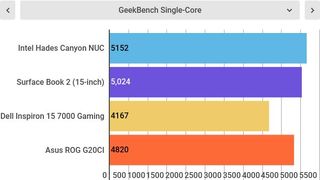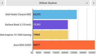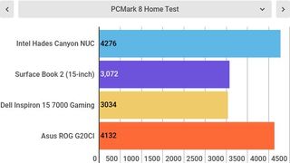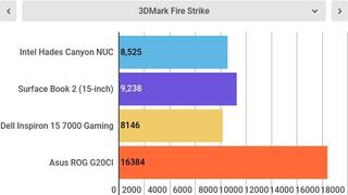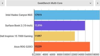 Compared to comparable notebook hardware in the 15-inch Microsoft Surface Book 2, the Intel NUC almost wins the complete race in both processor and graphically intensive tests. A full-on gaming laptop like the Dell Inspiron 15 7000 Gaming manages to close the gap a little better, but for the most part the Hades Canyon stays on top.