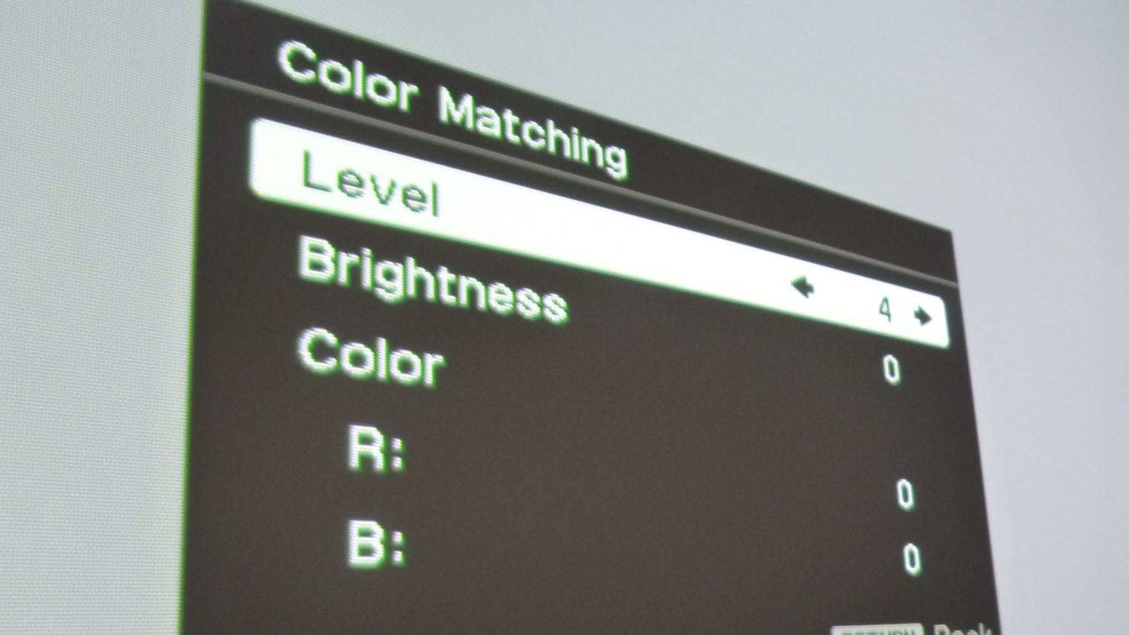 The contrast, brightness, color, hue, sharpness and color temperature can be adjusted, though the "expert settings" only amount to a lone black level adjuster.