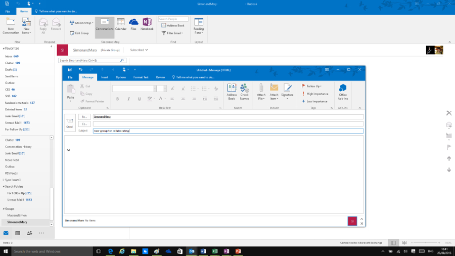Office 365 enterprise users see the new Office 365 Groups in Outlook, which gives you a quick way to get to the group messages and group calendar. You can create groups and add members from Outlook, instead of having to go to the Office 365 portal – although the icons for files and the OneNote notebook take you to the portal rather than opening in Outlook as lists. Microsoft is keeping Outlook up to date with its new services – the MyAnalytics feature of Delve also shows up in Outlook to help you see what documents you have in common with your email correspondents.