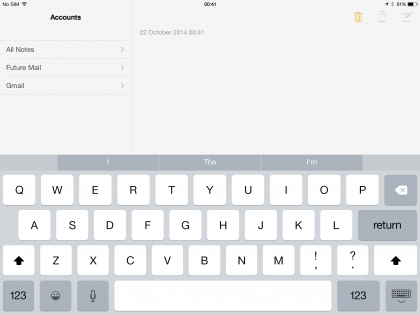 The keys are accurate and expansive, and in landscape mode work really well. It's especially good for Mail, as you can rattle through a few emails on your lap without worry, and the unified inboxes are useful for power-mailing.