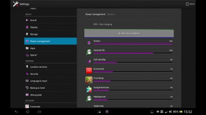 In fact, we enabled Stamina Mode, put the Sony Xperia Tablet Z in a bag and forgot about it. When we took the tablet out eight hours later, it was only down from 100% to 98%, which is a phenomenal result.
