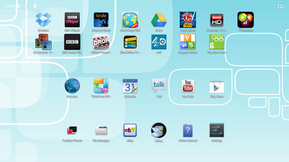 Toshiba Places is one of 12 apps/shortcuts on the main screen, the others being File Manager, eBay, Office (a double-link to either Splashtop Remote Desktop or PrinterShare), Online Manual, Settings, Browser, ThinkFree Office (a surprisingly comprehensive text editor), Calendar, Talk, YouTube and PlayStore.
