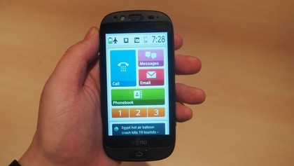 To that end, the way the capacitive touchscreen responds to input has been completely changed. Instead of designing the phone to be as responsive as possible, Fujitsu has taken onboard the fact that older users are likely to go a bit slower. So instead of responding to the slightest touch, the capacitive screen behaves more akin to a resistive display, in that you need to actually push it to get a response.