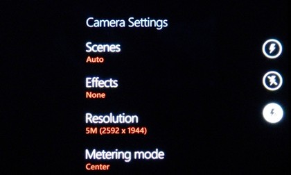 The camera interface is pretty basic too, but it's easily accessed from the phone's screen, and enables you to change the focus mode, ISO levels and a constant option to change the flash, which we're glad Microsoft has realised is among the most often used features.