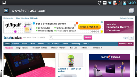 We couldn't believe it when, over Wi-Fi, we loaded the TechRadar homepage. We didn't even get to a second before the mobile site was all displayed and ready to go.