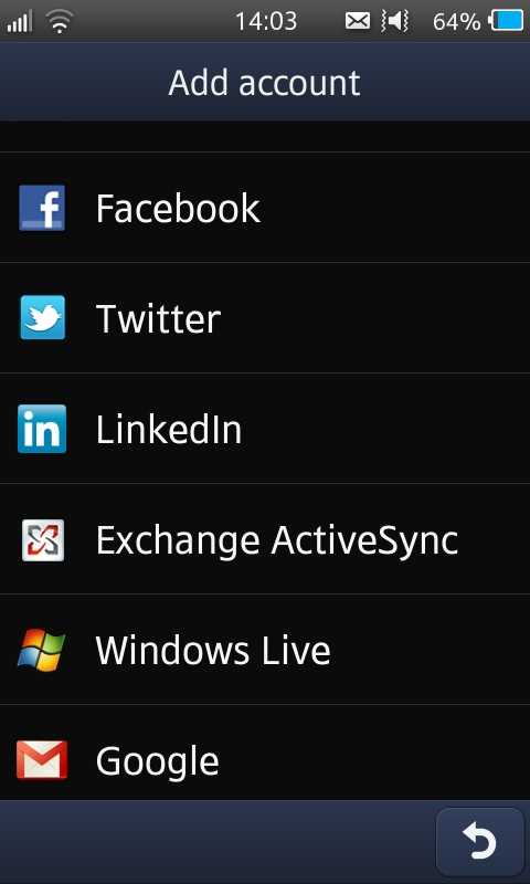 Integration of contacts from social networks comes if you configure accounts. You can set up quite a range of third party accounts including Facebook, Twitter and LinkedIn, as well as Google, Yahoo, Exchange ActiveSync for the officebound and Windows Live.