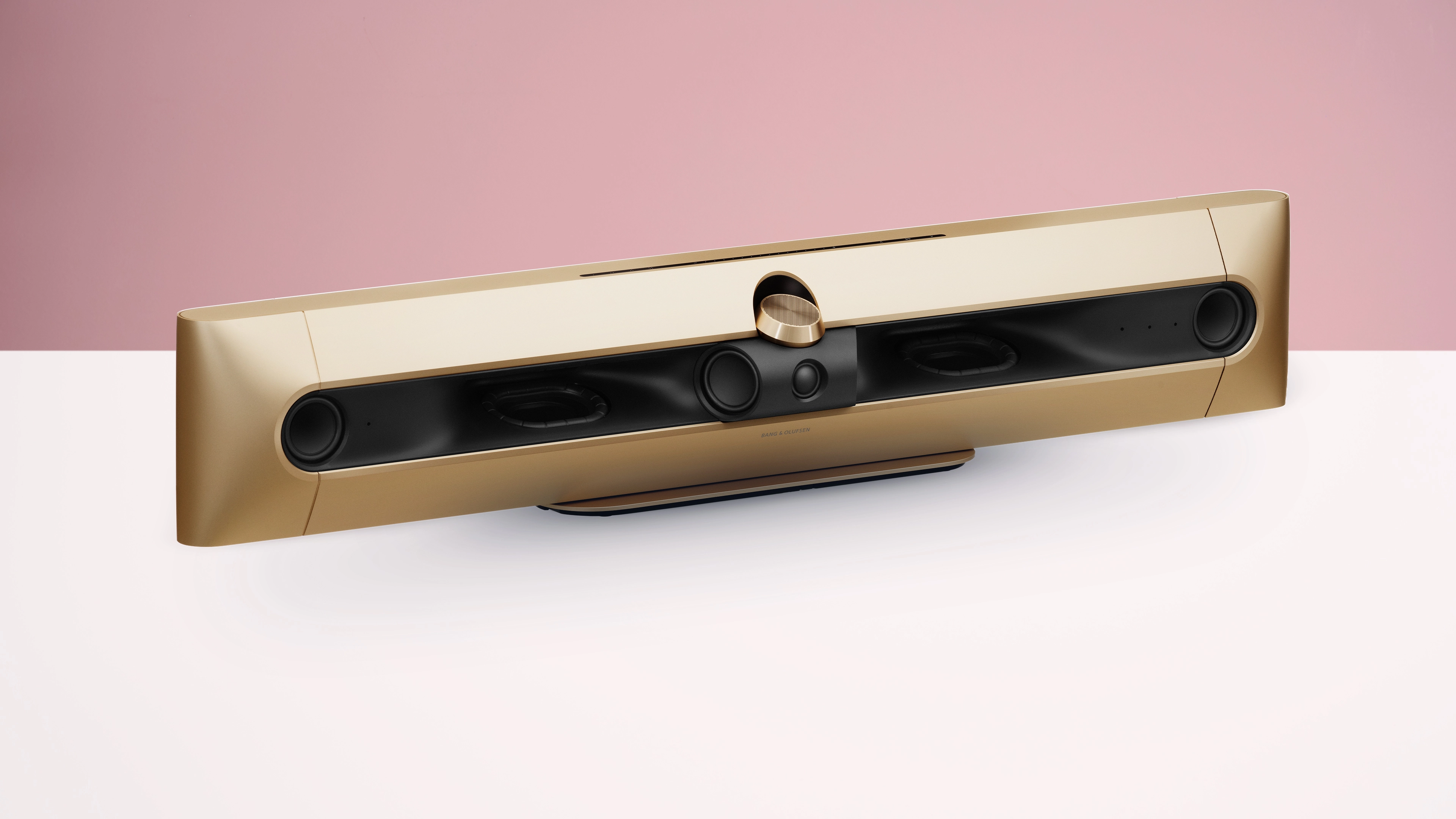 Bang & Olufsen describe it as a three-dimensional sculpture "that mirrors the three-dimensional sound it produces" and in addition to its precision-machined casing it features 90 LEDs that promise to deliver "an ethereal glow inside the soundbar".