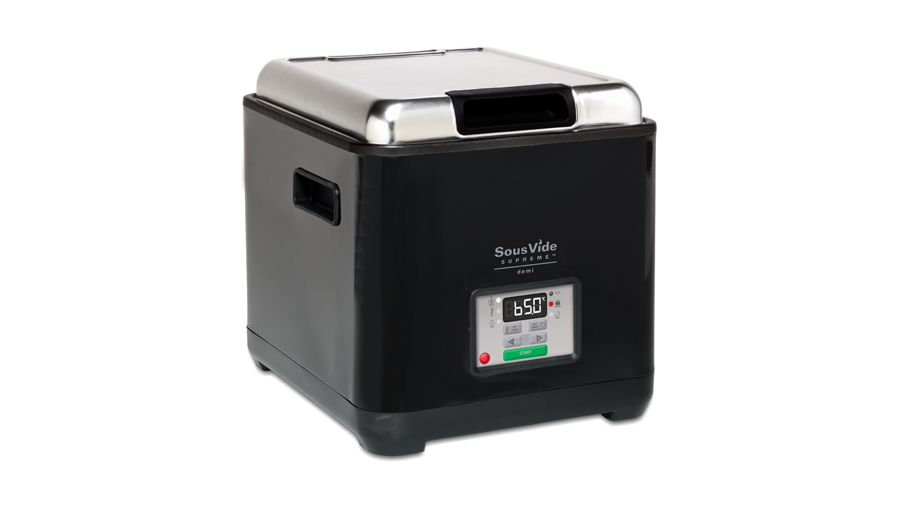 The SousVide Supreme Demi enables you to cook food in this way in your own kitchen. Simply wrap meat in a vacuum-sealed pouch, drop it in the water contained in the SousVide Supreme, and push a button to start the slow cooking process.