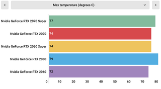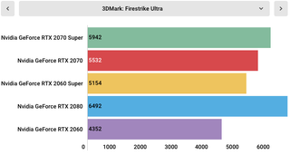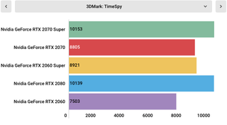 The massively improved performance is reflected in our benchmarks, too. For instance, in 3DMark FireStrike Ultra, the Nvidia GeForce RTX 2070 Super shows a massive improvement over the vanilla RTX 2070 – scoring 5,942 vs the latter’s 5,532. And, in TimeSpy, one of the more popular tests, the RTX 2070 Super scores 10,153 vs the RTX 2070’s 8,805.