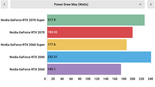 Right now, we don't know if the Nvidia GeForce RTX 2070 Super features more RT and Tensor Cores than the Nvidia GeForce RTX 2070, but it is rated for better ray tracing performance, at 7 Giga Rays. Both of these architectural improvements, however, comes at the slightly increased power consumption at 215 Watts.